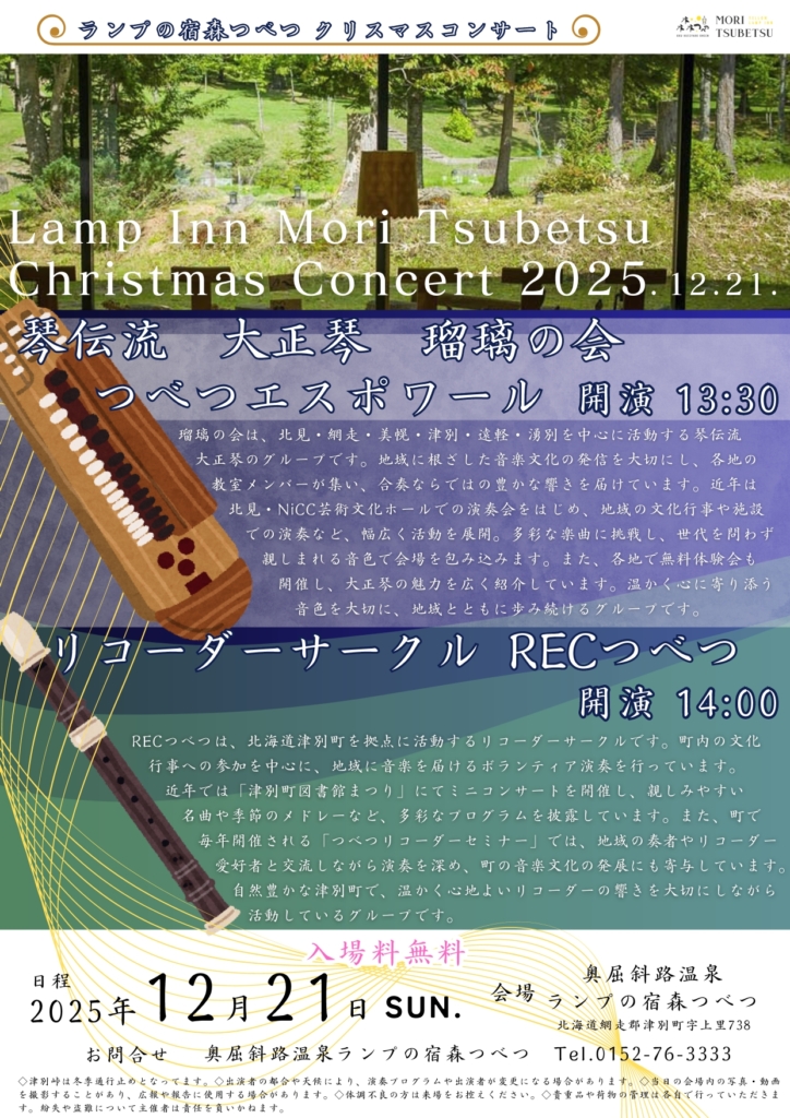 2025年ランプの森つべつクリスマスコンサートのお知らせ